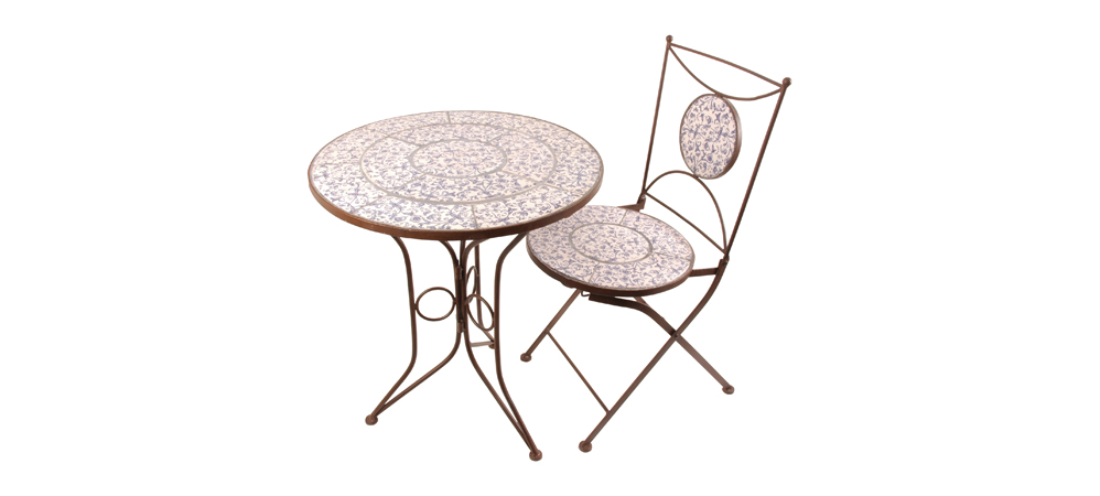 Оригинальный набор садовой мебели послужит не только надежным функциональным приобретением, но и доставит массу положительных эмоций Материал: Керамика, кованое железо Цвет: Коричневый Декор: Цветной принт Размер стола: ø 60x70 cm Размер стула: ø 40x87 cm Вес стула: 11 кг Вес стола: 14 кг